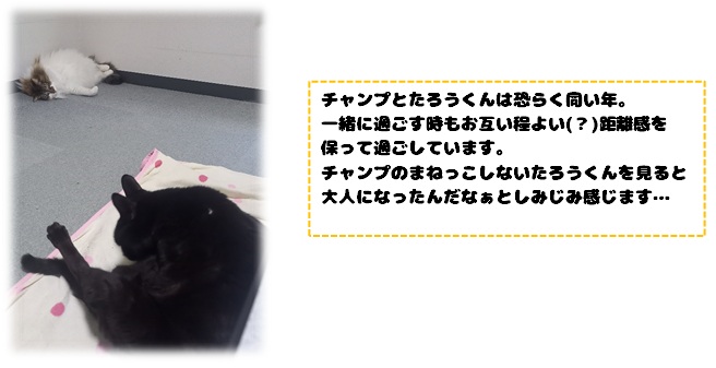 今では私のたろうくんへの愛が重すぎて、本人からネコパンチをお見舞いされる事もしばしばですが(笑)、メディカルスタッフの中でも随一の仲睦まじい関係だと思っています。(そうであってほしい!)