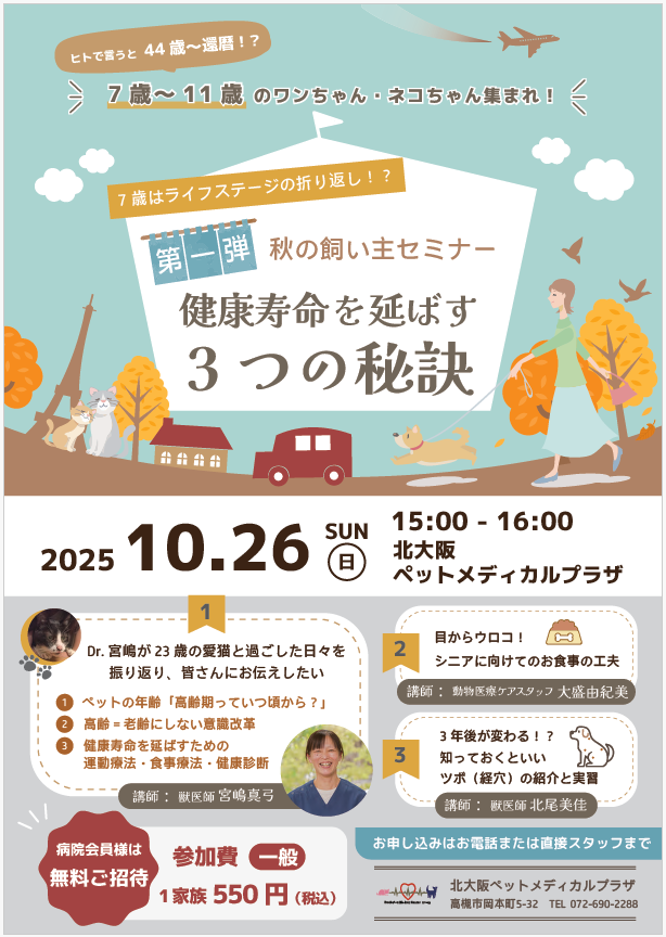 《秋の飼い主セミナー開催》「健康寿命を延ばす3つの秘訣」